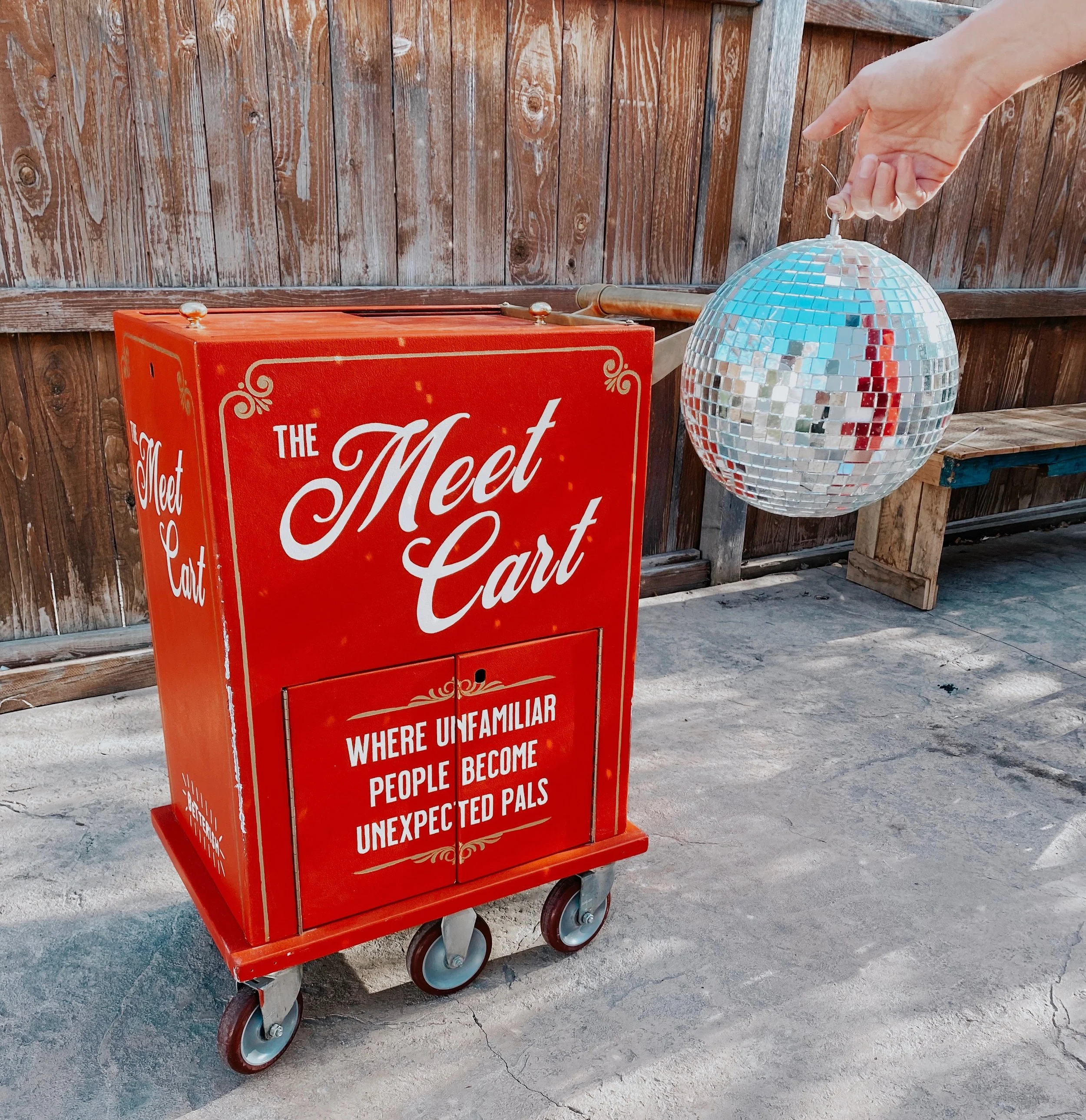 I had this idea in my head for years: a way to socially bridge strangers together with a wacky little thing on wheels. When I moved to Denver, I brought it to life. The Meet Cart is a mobile structure where unfamiliar people become unexpected pals---it's where strangers and friends meet, greet and play through games, prompts and activities as a way to spark more meaningful connections. Amidst COVID, it shifted to virtually rolling its wheels around the world hosting celebrations, company happy hours, and various community-building experiences world wide.